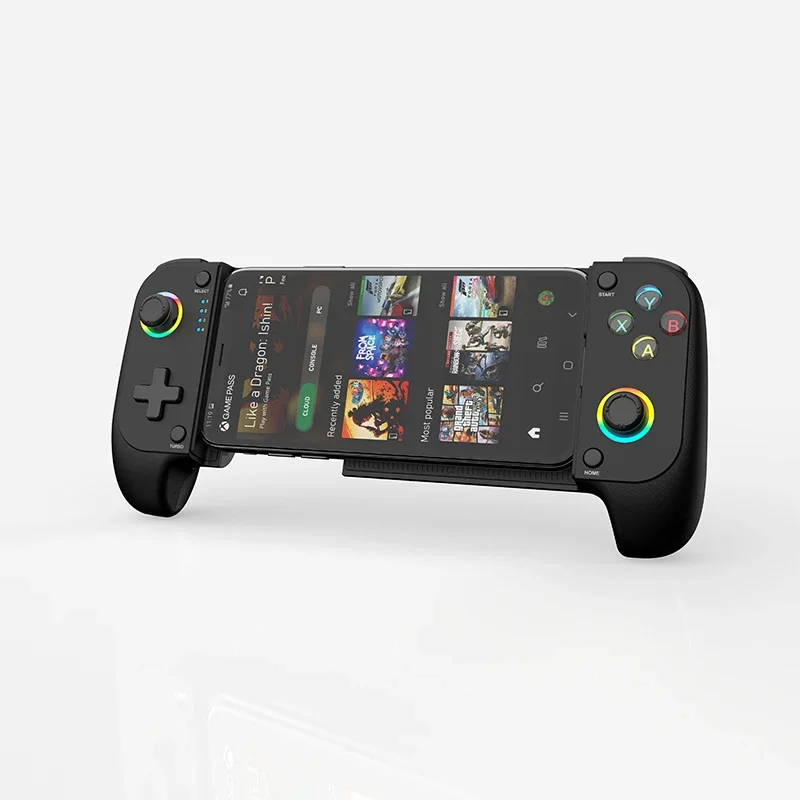 Bluetooth controller STK-7009FX, using Hall stick 3D, RGB light effect display, the main function is used for Android platform /IOS platform mobile game controller. Support XBOX cloud platform, console streaming gameplay. Supports shanwan controller, gamepad space, and shootingplus v3+ APP.